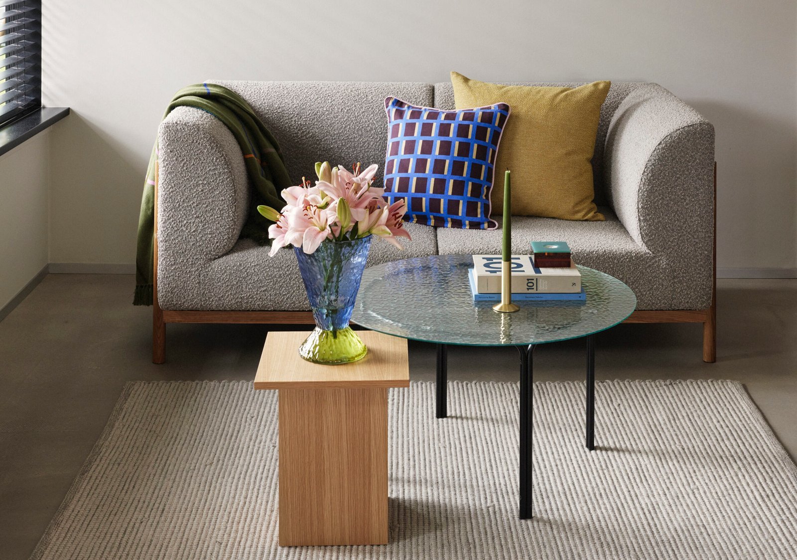 Stor dekorativ vase i lyseblåt og olivengrønt tekstureret glas.