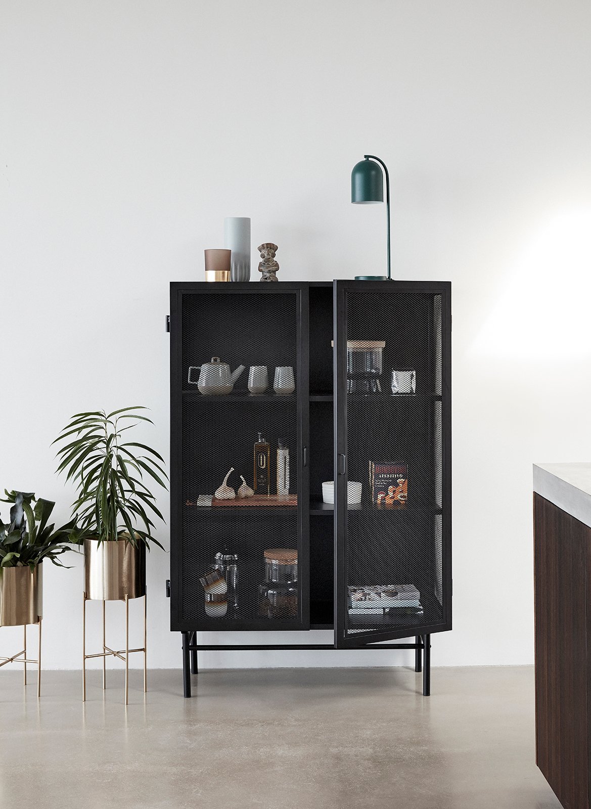 Plantestandere med messingfarvet stel. Sæt med to. En lille og en stor.