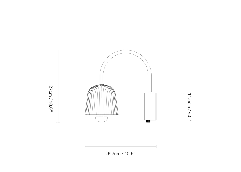 Asteea Wall extends the signature floral silhouette of the Asteea collection into a wall-mounted format that can be rotated and dimmed to fit changing needs. Inspired by the soft shape of a bell flower, the wall fixture is crafted in a satin brass finish and paired with an acrylic shade, which diffuses the integrated LED. The curved brass arm and grooved shade cast a subtle play of light and shadow, adding warmth and character to any room while preserving wall space.