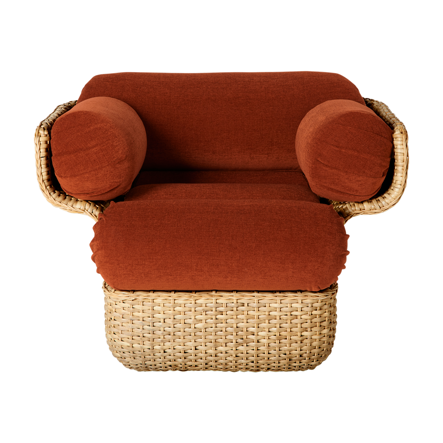 The name ‘Basket’ honors the classic hand-weaving technique used in rattan basketry. The collection comprises a three-seater sofa, a two-seater sofa, and a lounge chair, all of which share the same construction. Replacing the inner fiberglass shell that Colombo initially utilized, the core of each piece is now formed from a more environmentally responsible steel skeleton, which provides strength and stability to the unique form. This is covered with a hand-woven rattan skin, made from interlaced strips and oval stakes, a technique that de- mands a tremendous degree of skill and craftsmanship to create.