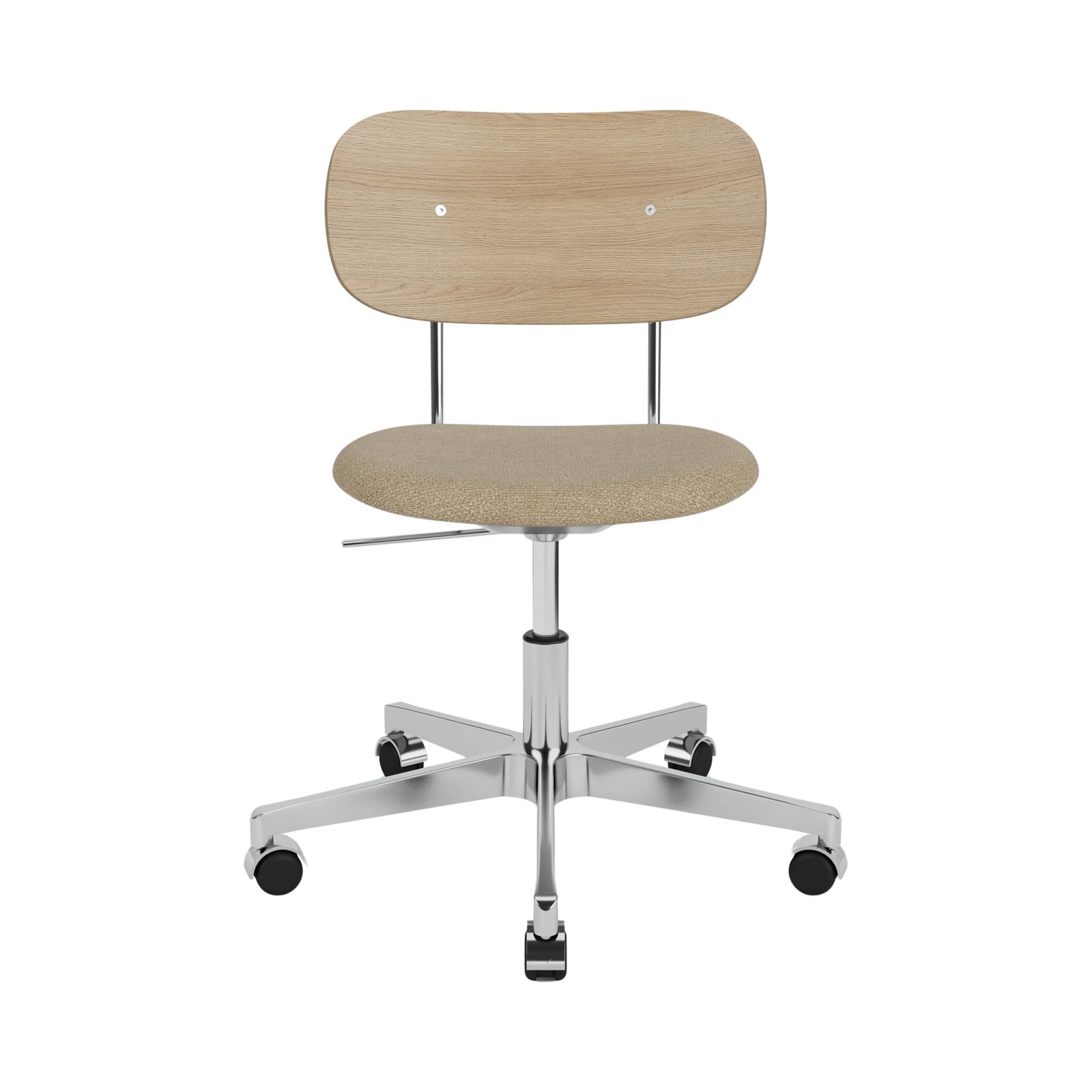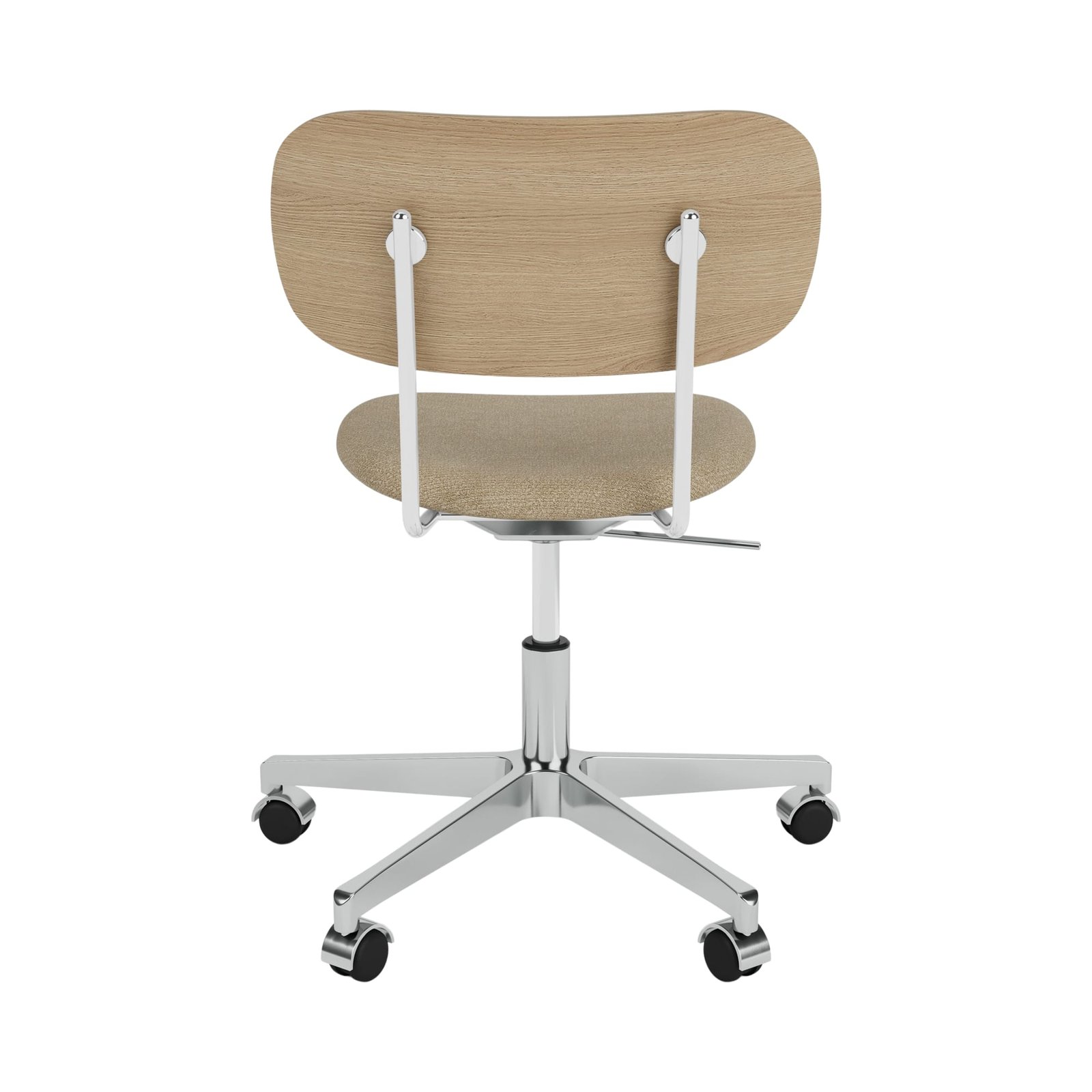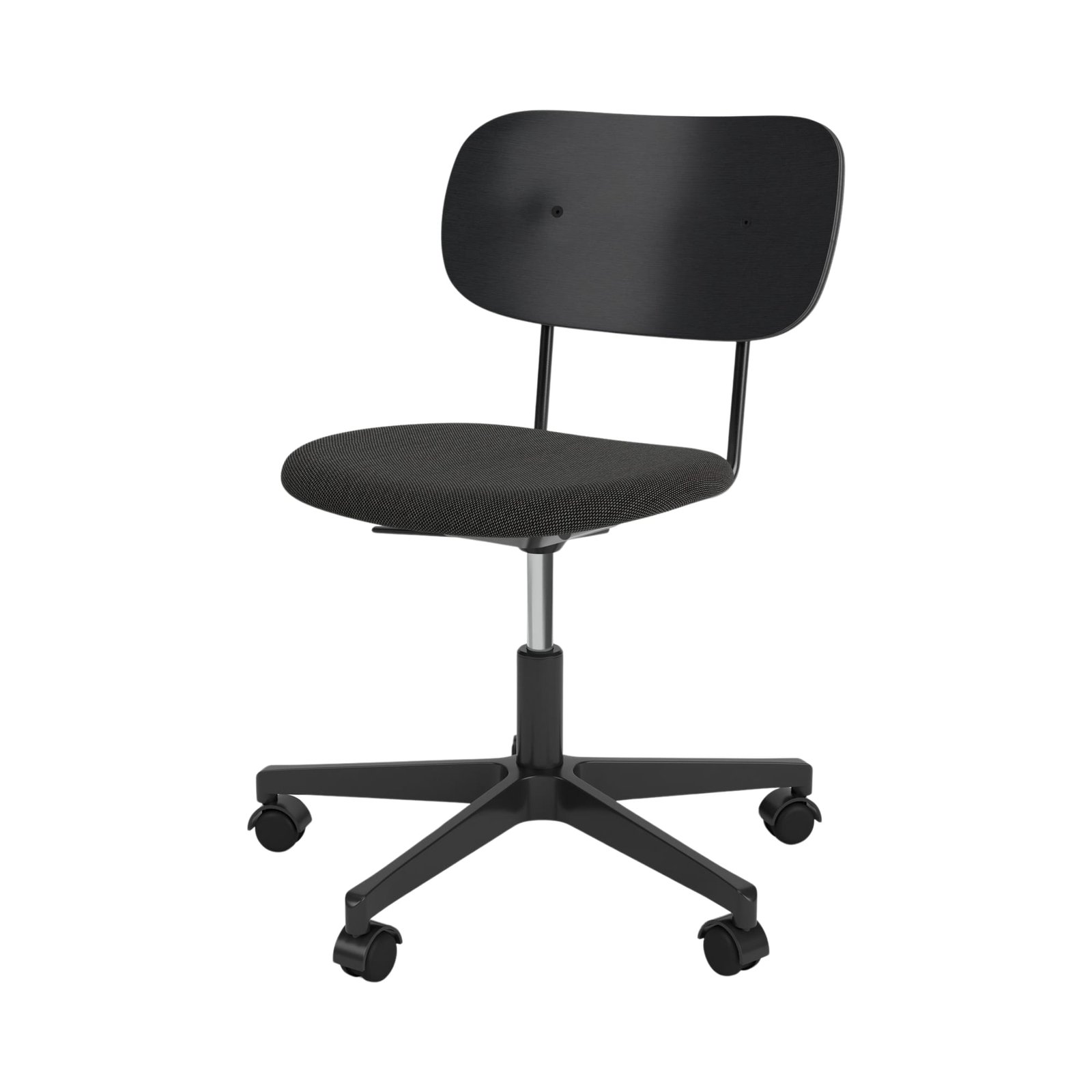 Co Task is available with full upholstery or with only the seat upholstered, offering different levels of comfort. It features castors for easy movement and a height-adjustable column with a 13 cm / 5.1” range. The column is made of extruded aluminum, while the star base is crafted from die-cast aluminum, available in black powder-coated or chrome finish.