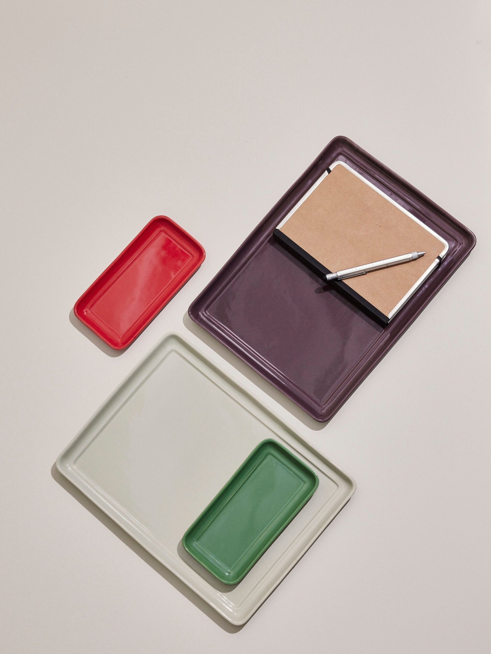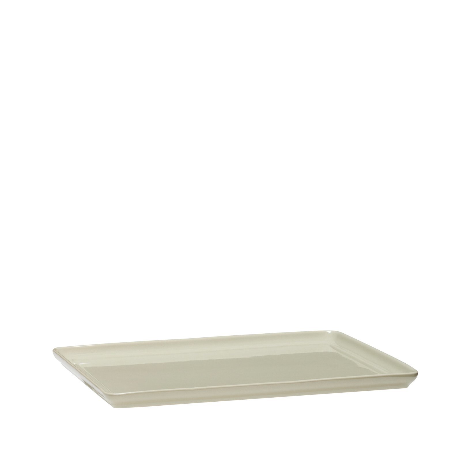 Stor bakke i keramik i farven sand med en mindre grøn bakke i keramik.