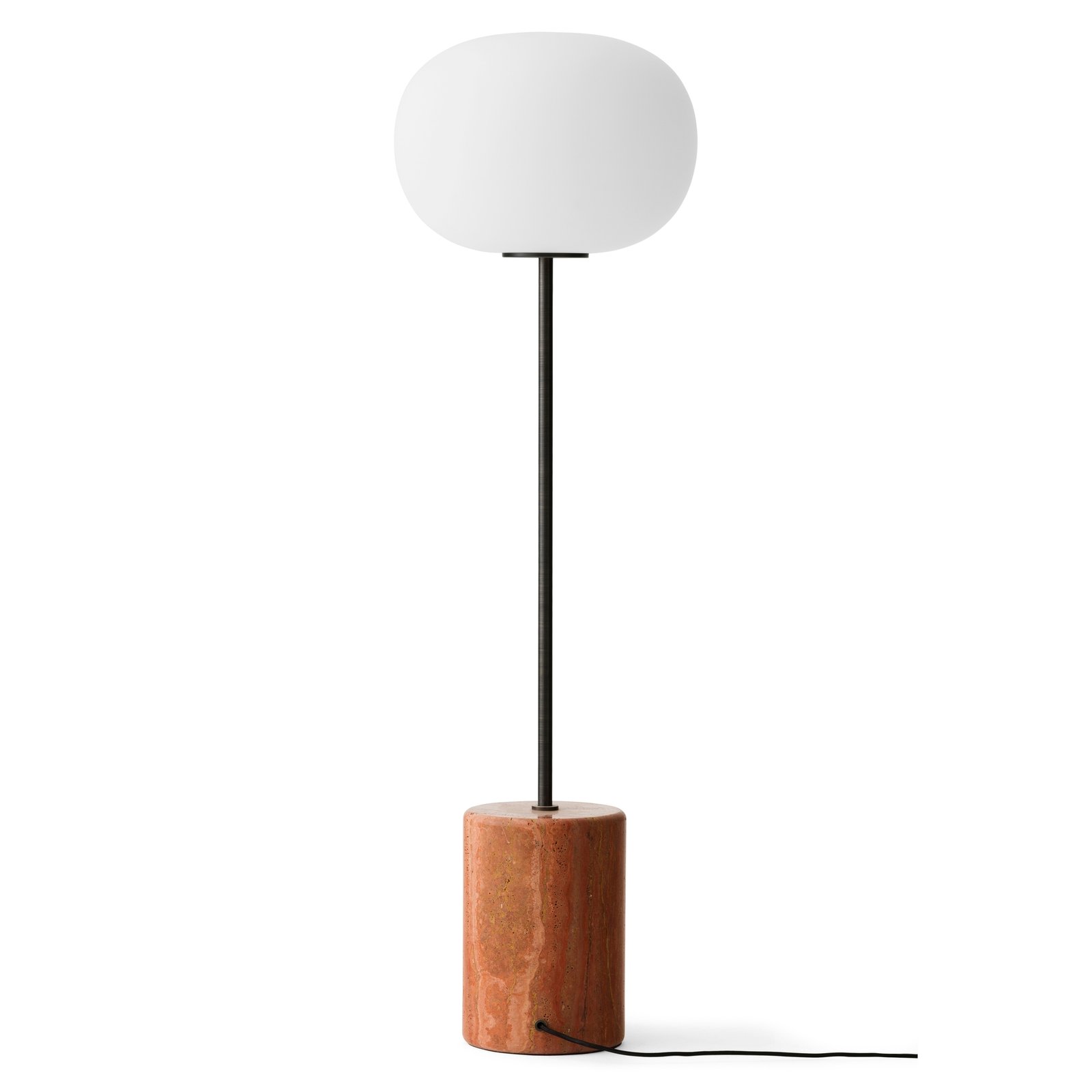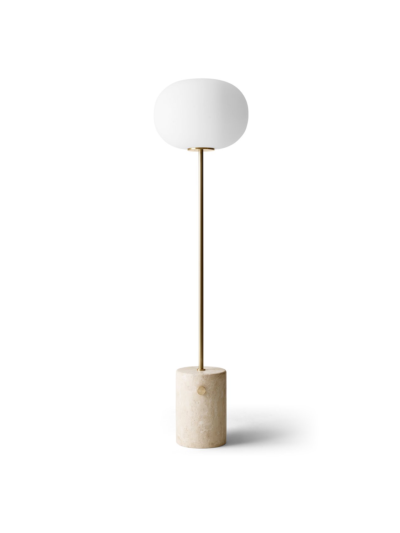 Mouth-blown glass shade and machine-cut base with hand-polished finish. Details in cut solid brass.