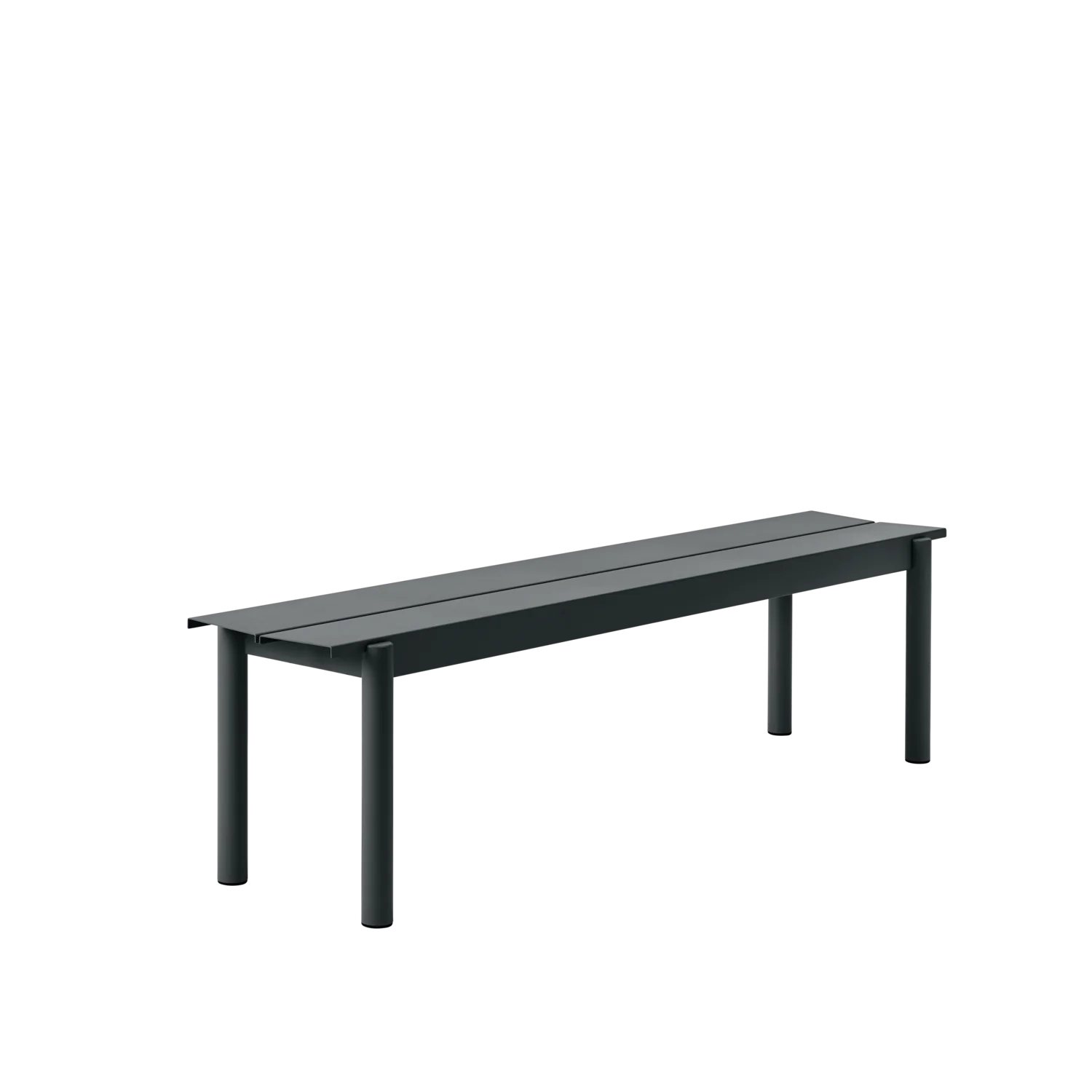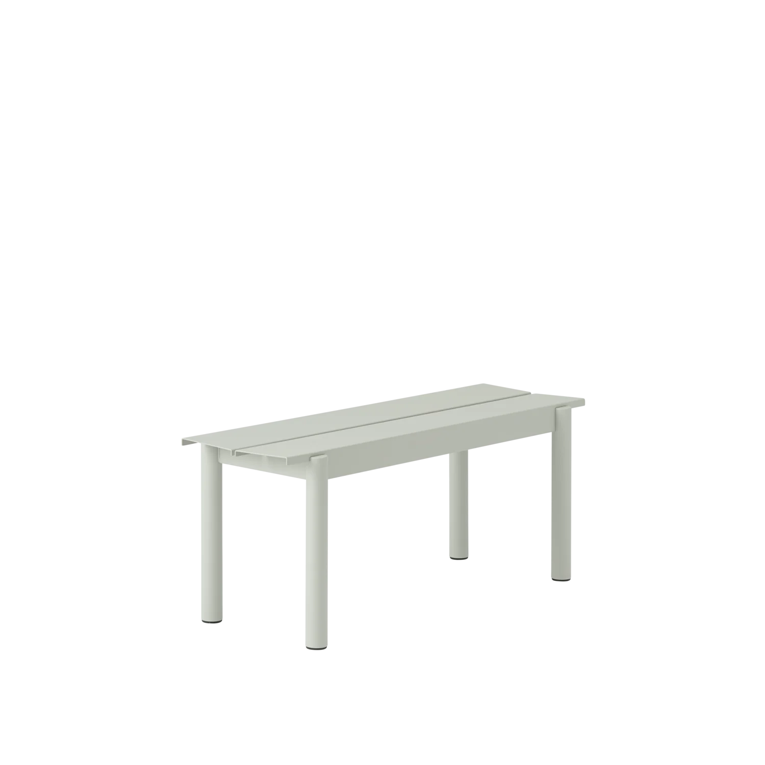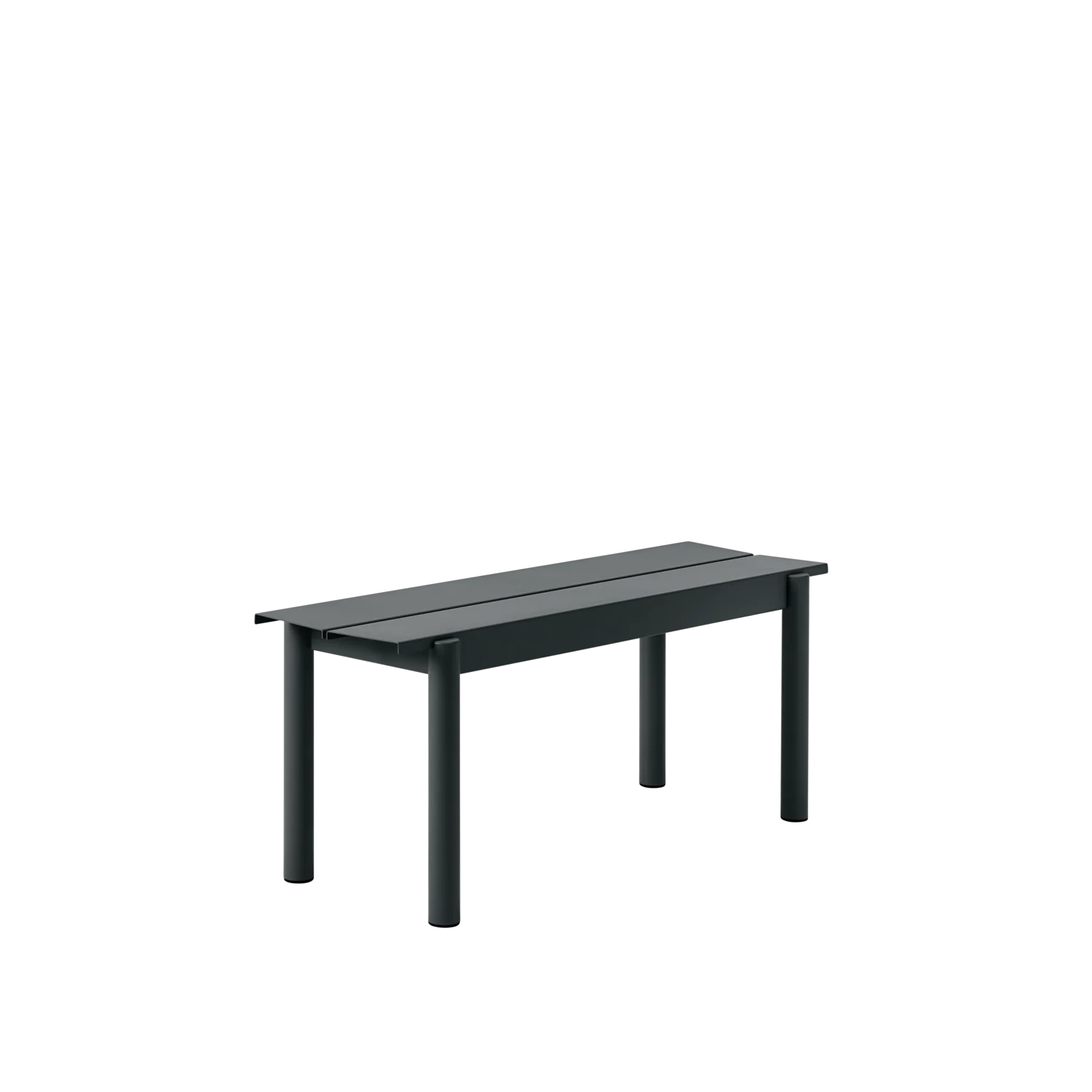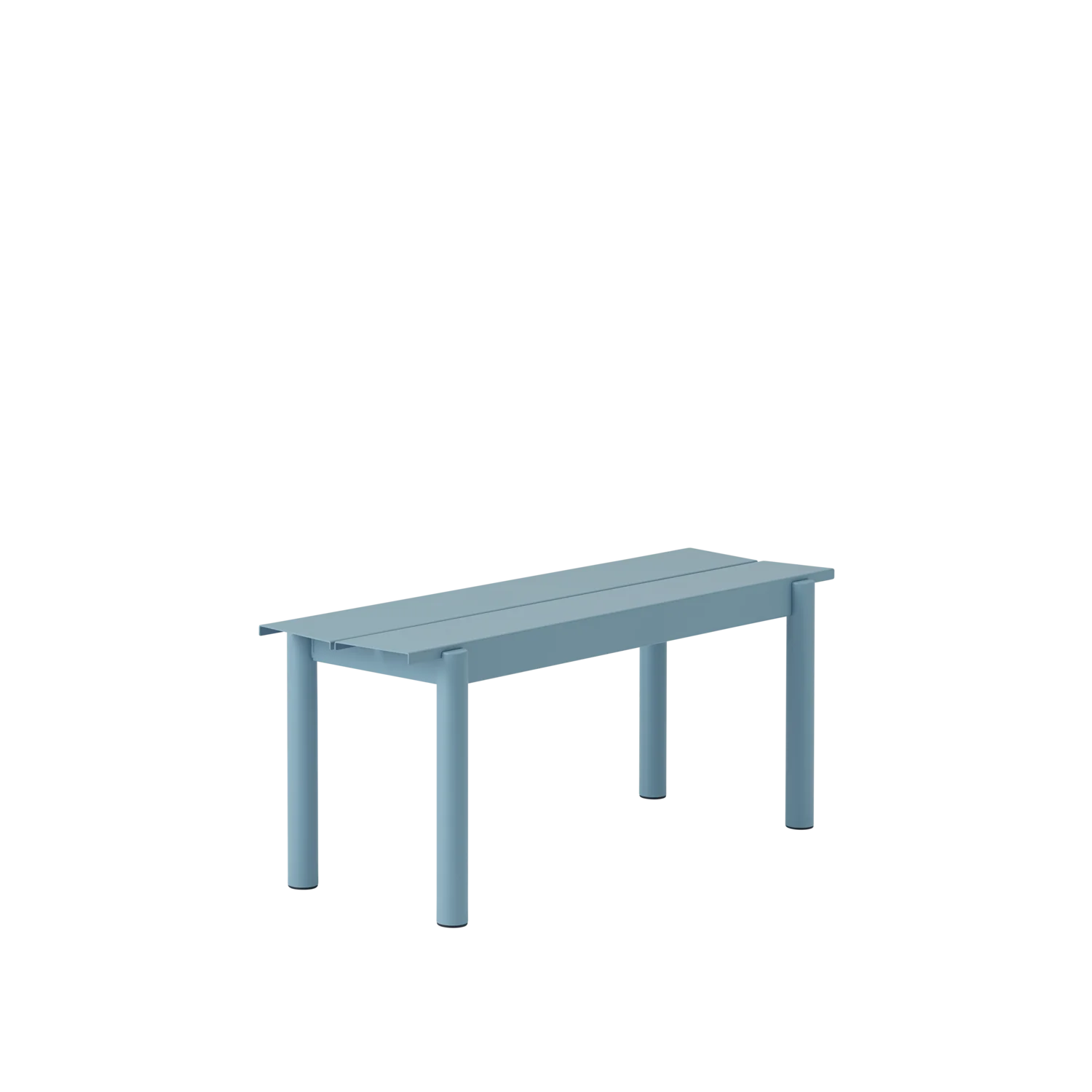 The Linear Steel Bench brings new perspectives to modern outdoor furniture through its straight lines alongside the folded edges, halfcircular intersecting legs and small spacing for easy removal of water. Kept visually clean for long-lasting aesthetics, the Linear Steel Bench finds its distinct character through subtle detailing and a simple expression, allowing for it to complement any outdoor setting. The Linear Steel Bench is designed in proportions that allow for it to slide easily under the matching Linear Steel Table.