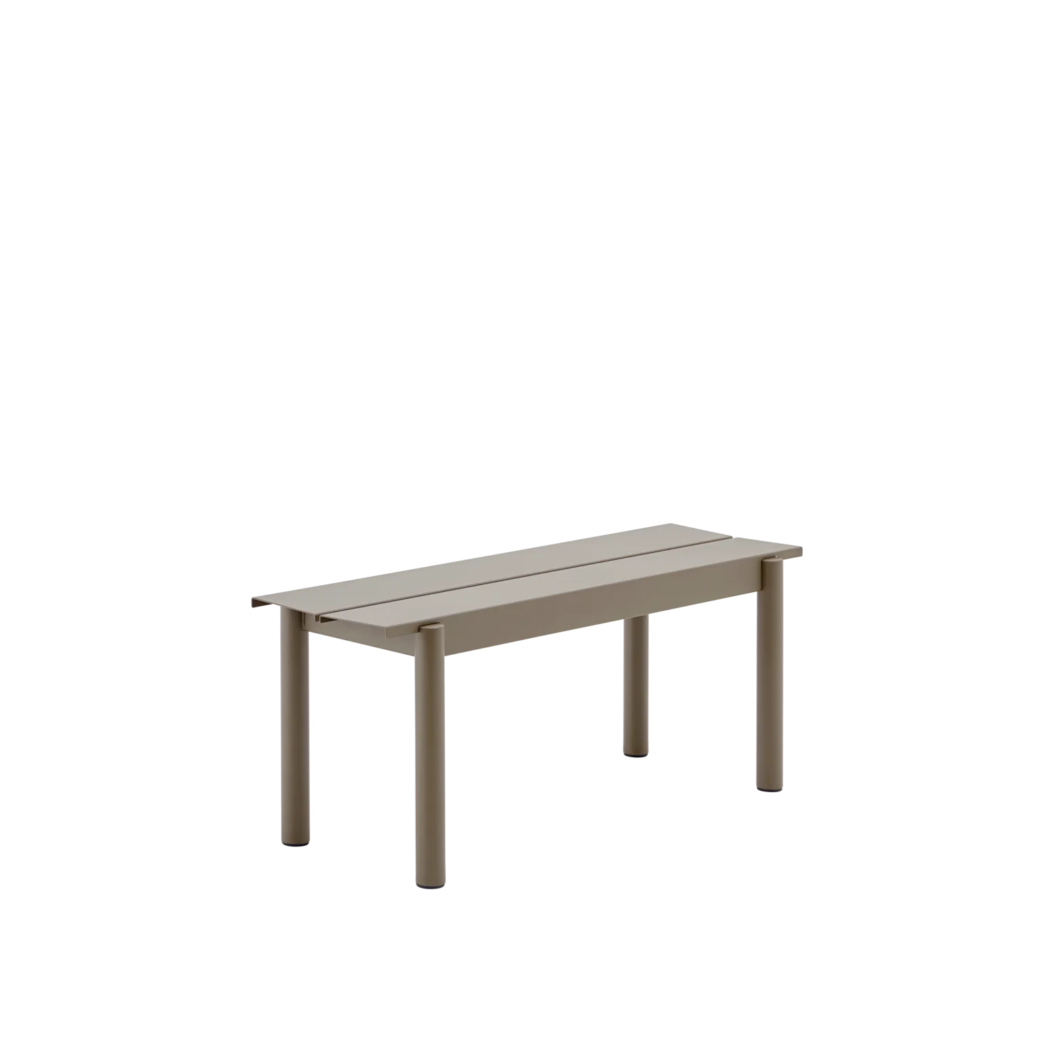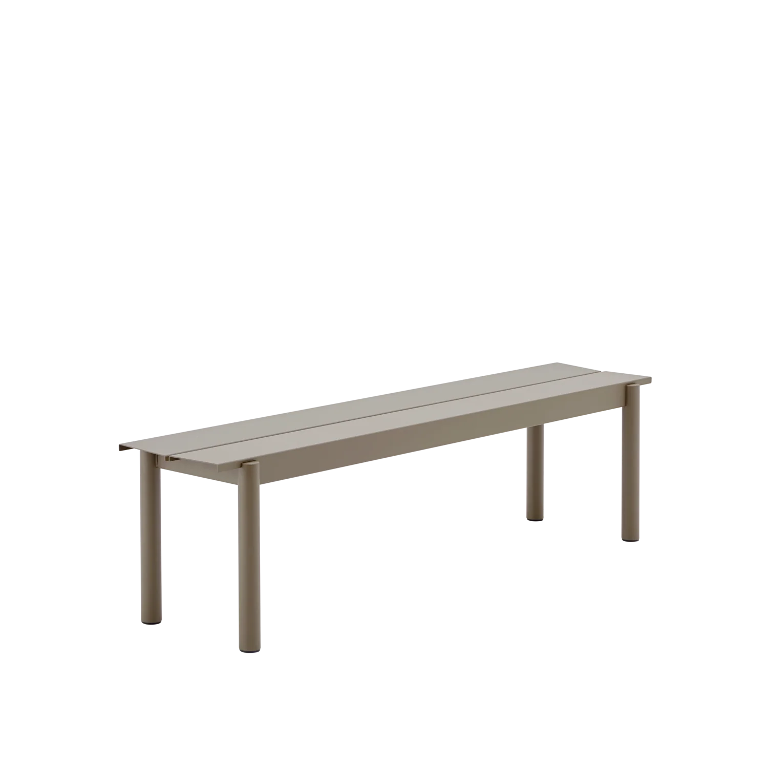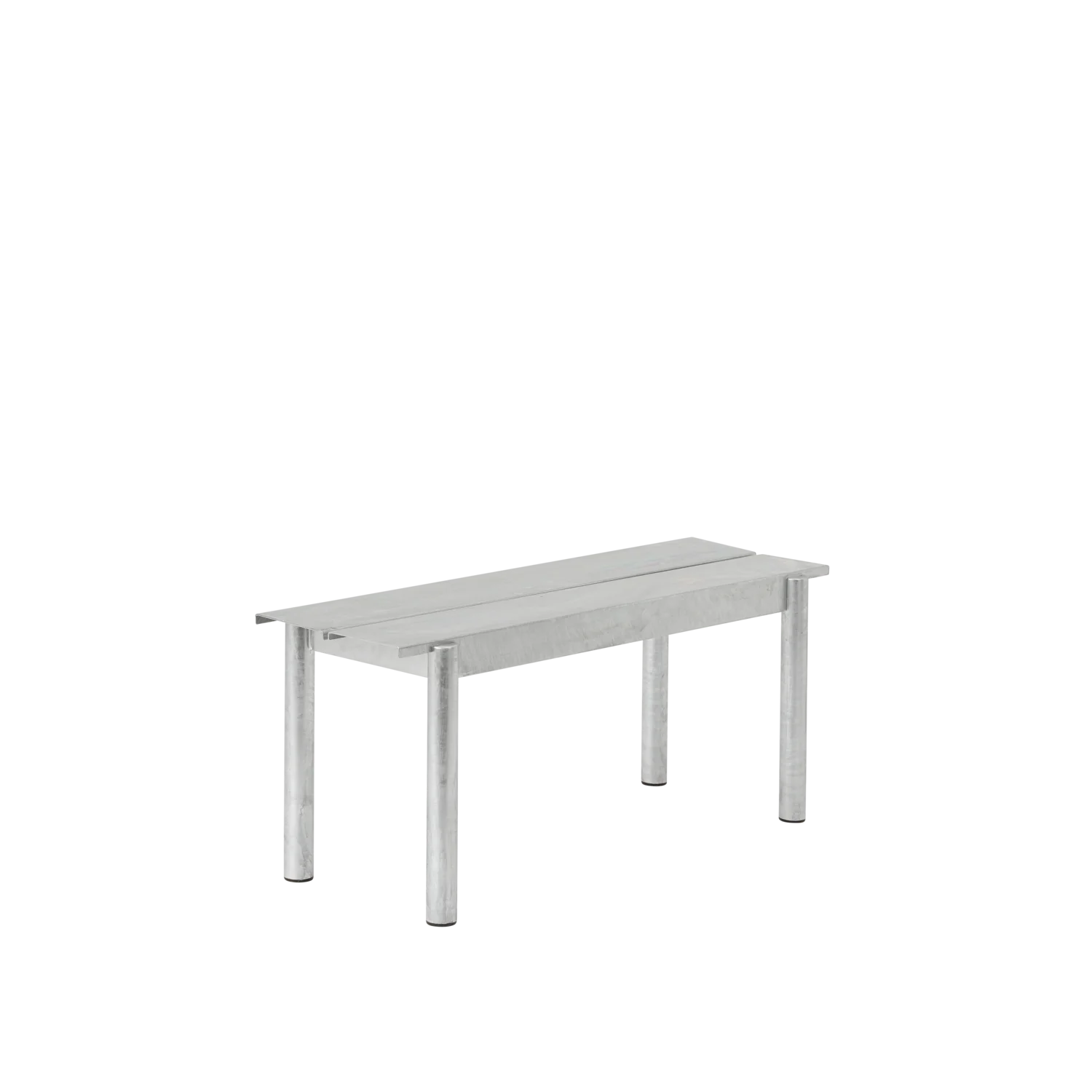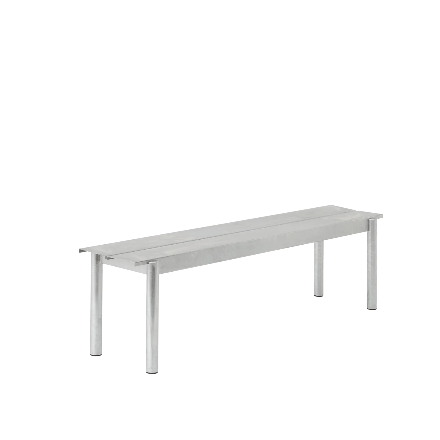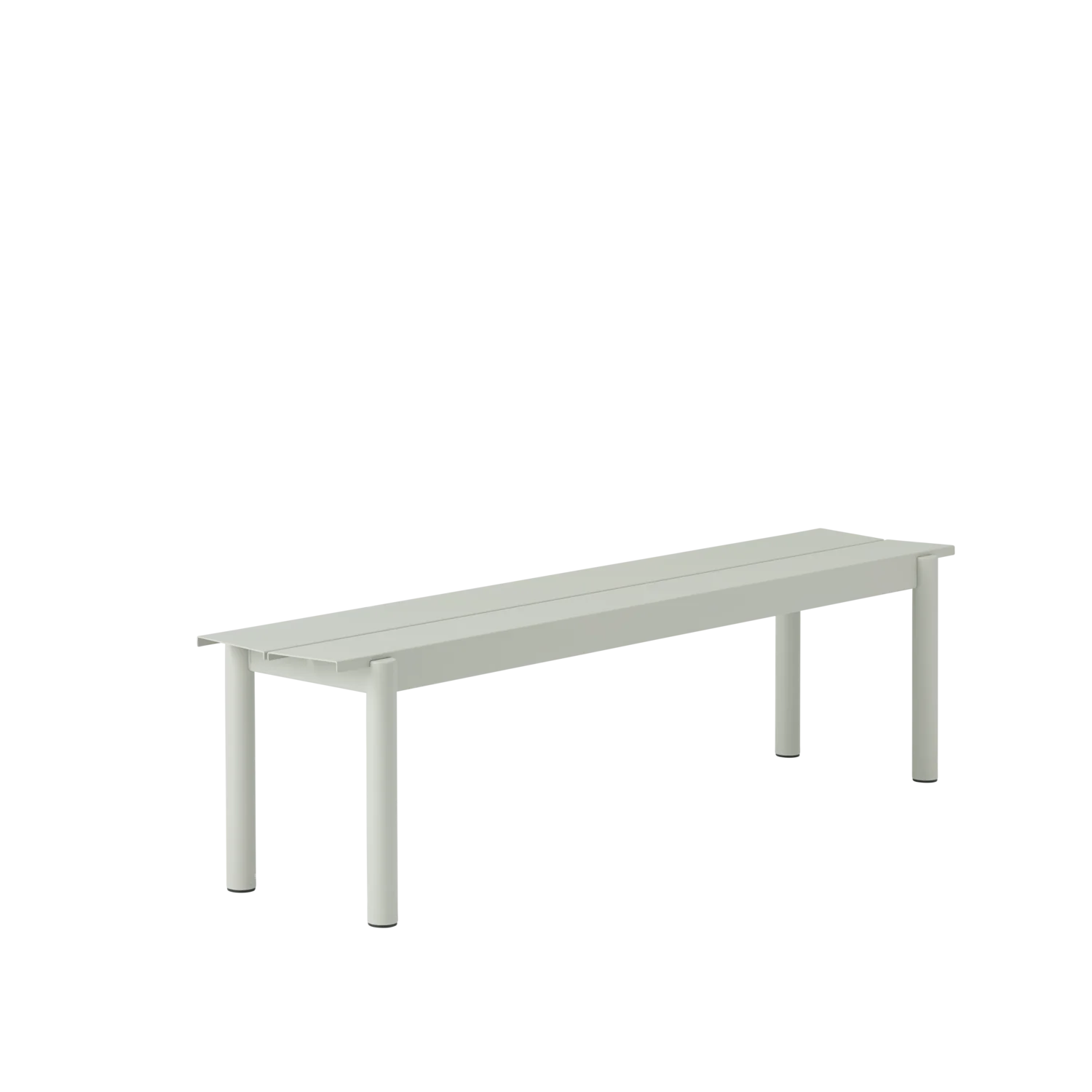 The Linear Steel Bench brings new perspectives to modern outdoor furniture through its straight lines alongside the folded edges, halfcircular intersecting legs and small spacing for easy removal of water. Kept visually clean for long-lasting aesthetics, the Linear Steel Bench finds its distinct character through subtle detailing and a simple expression, allowing for it to complement any outdoor setting. The Linear Steel Bench is designed in proportions that allow for it to slide easily under the matching Linear Steel Table.