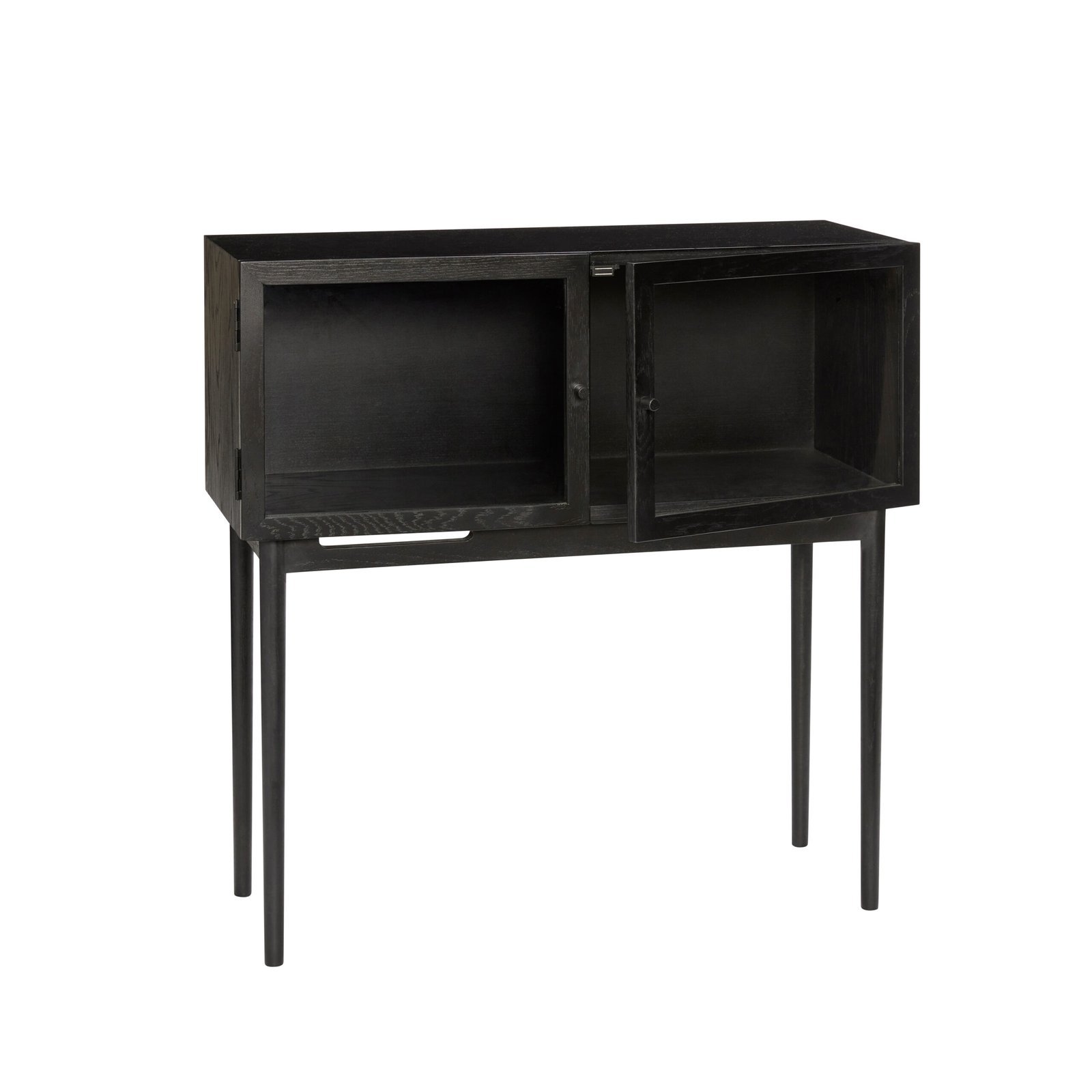 Sort egetræskonsolbord med skabslåger i glas. Lavet af FSC®-certificeret egetræsfiner.