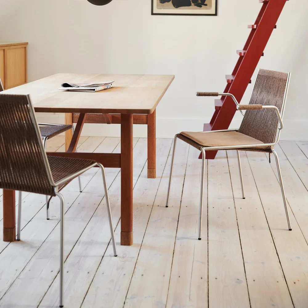 A bold fusion of contemporary allure and enduring quality, the Noel Chair stands as a notable piece within a series of versatile seating options. Its tube frame, crafted from brushed stainless steel, supports seats and backs upholstered in either linen or wool flag halyard. This chair encapsulates minimalist design, boasting subtle yet durable qualities, culminating in a tactile and contemporary piece that undoubtedly makes a lasting impression in any space. To enhance comfort and support, the chair offers the option of a soft cushion fashioned from high-quality aniline leather in four natural hues.
