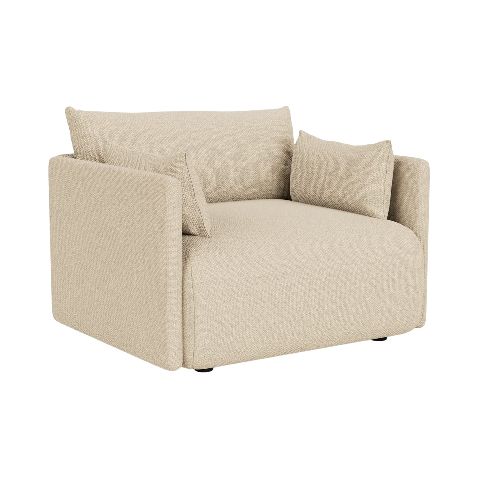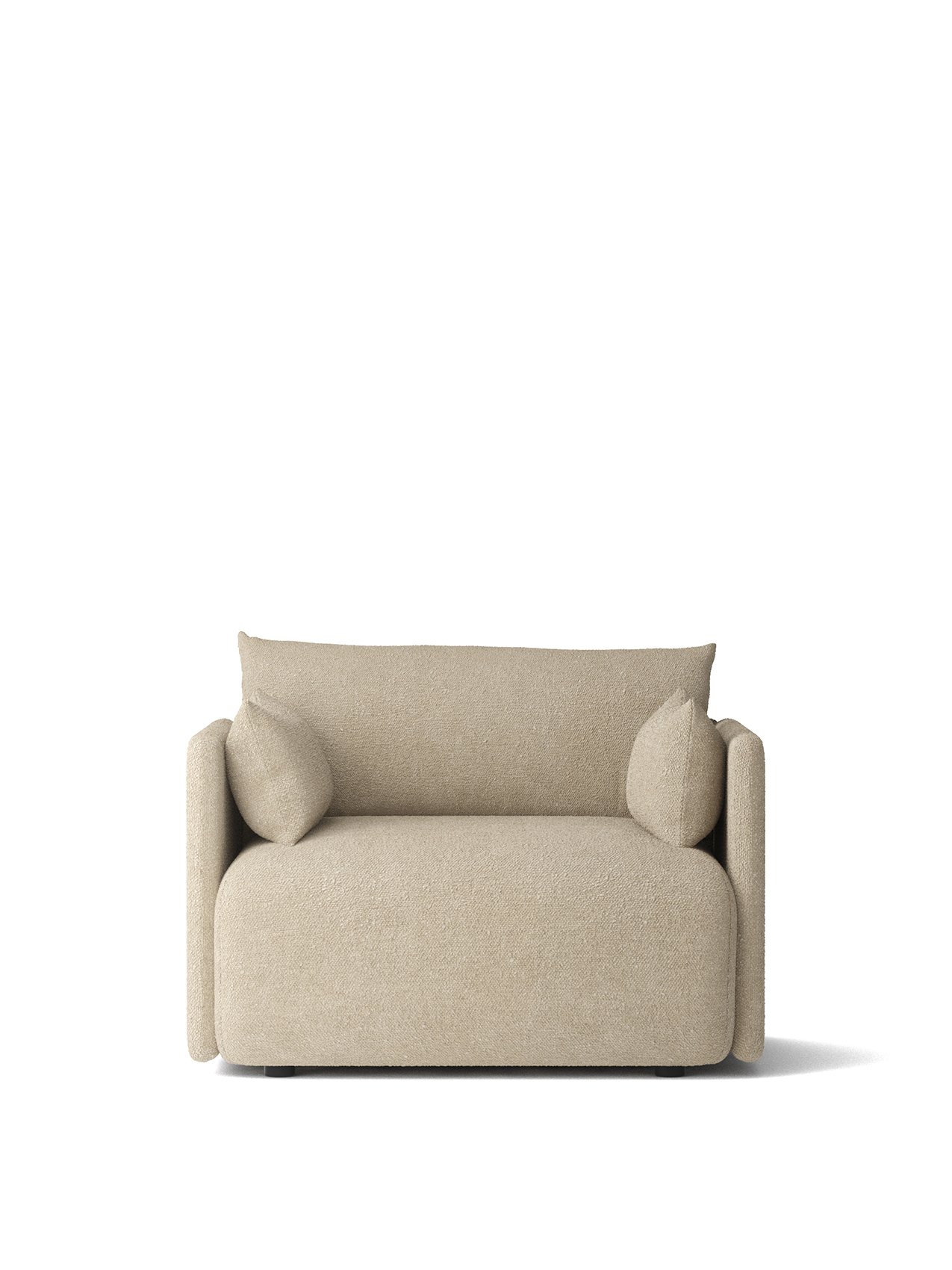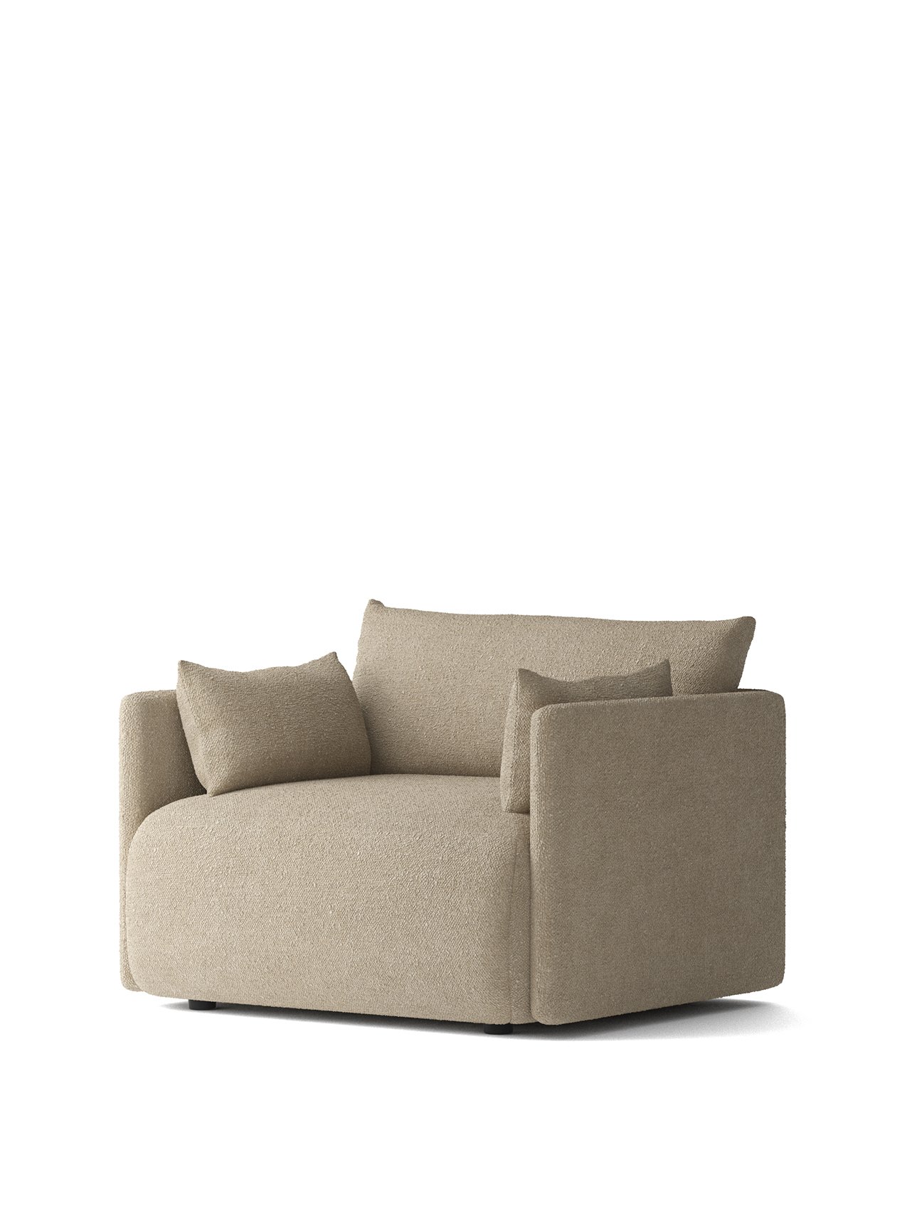 Offset Sofa is constructed with a structural frame made from pine, plywood and MDF. Seat consists of a double foam layer with no-zag springs. Back and armrest cushions are filled with a soft mix of foam and feathers for comfort and support