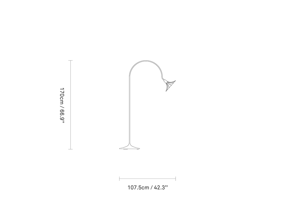 With an emotional design language, romantic features and rich materials, the Petalii Floor lamp really sets the tone for the interior decor. The floor lamp is crafted from fine metal and features a slim stem in polished brass colour, curving to a white metal shade shaped as a single flower blooming. The light source is placed at the heart of the bloom, illuminating the immediate surroundings by a sofa or in the corner of a lounge area.