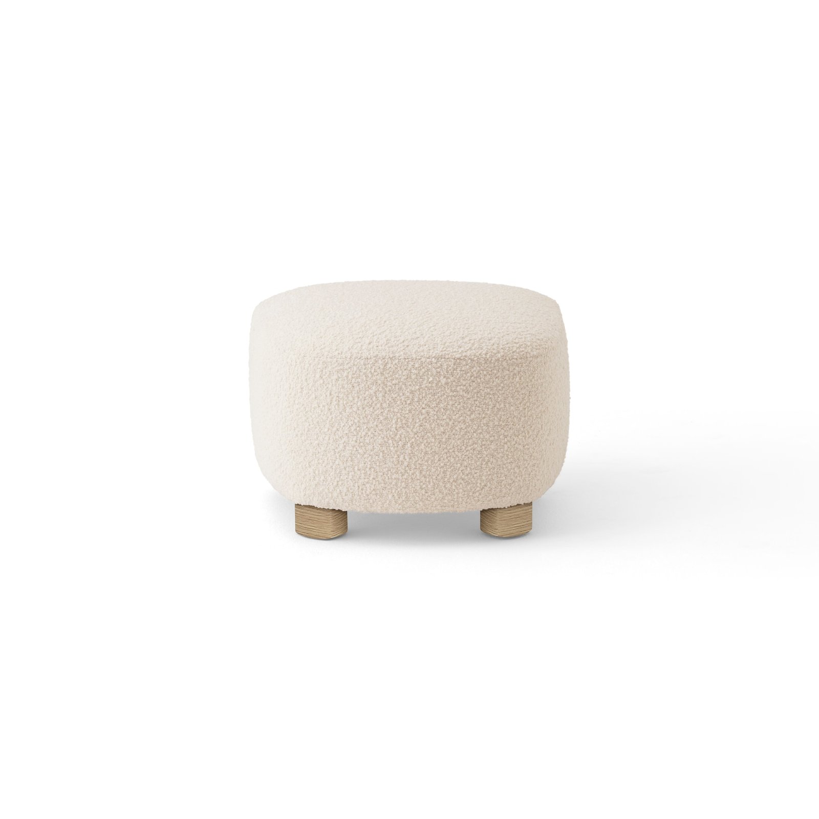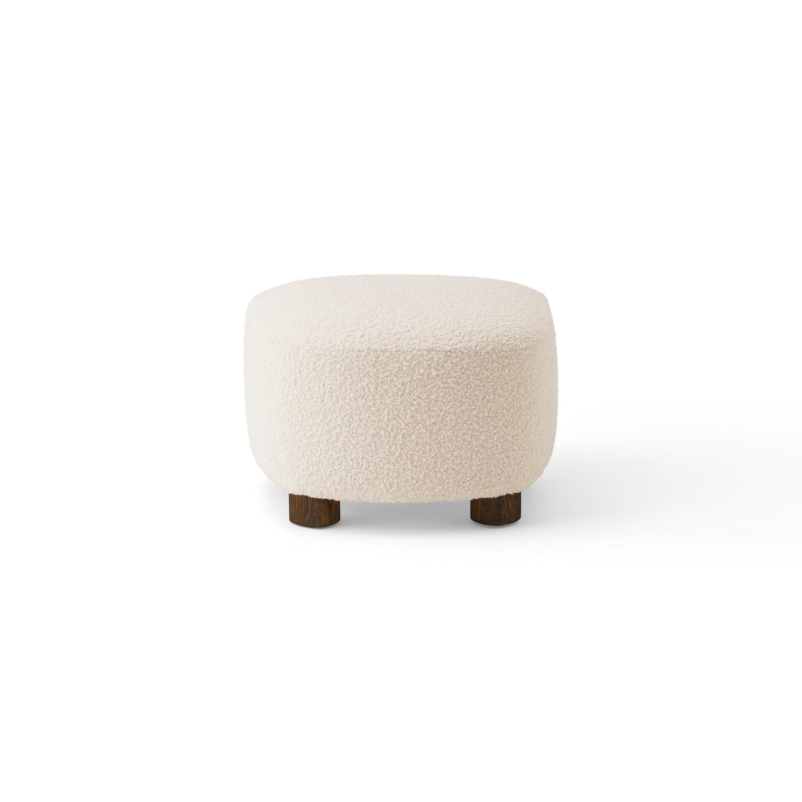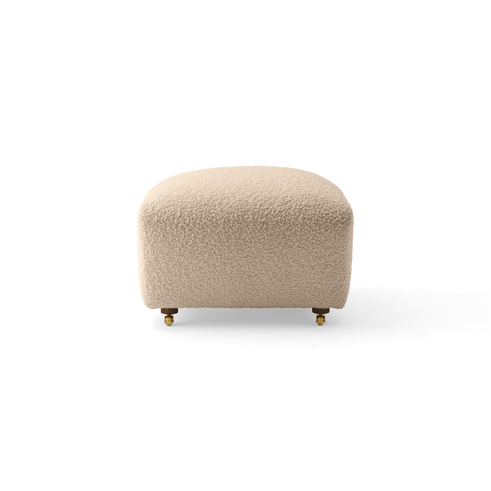 The ottoman is constructed with a structural frame made of plywood. Seat consists of layered foam in different hardness with webbing/belts and springs underneath. The legs are made from oak, with two additional brass legs functioning as wheels.