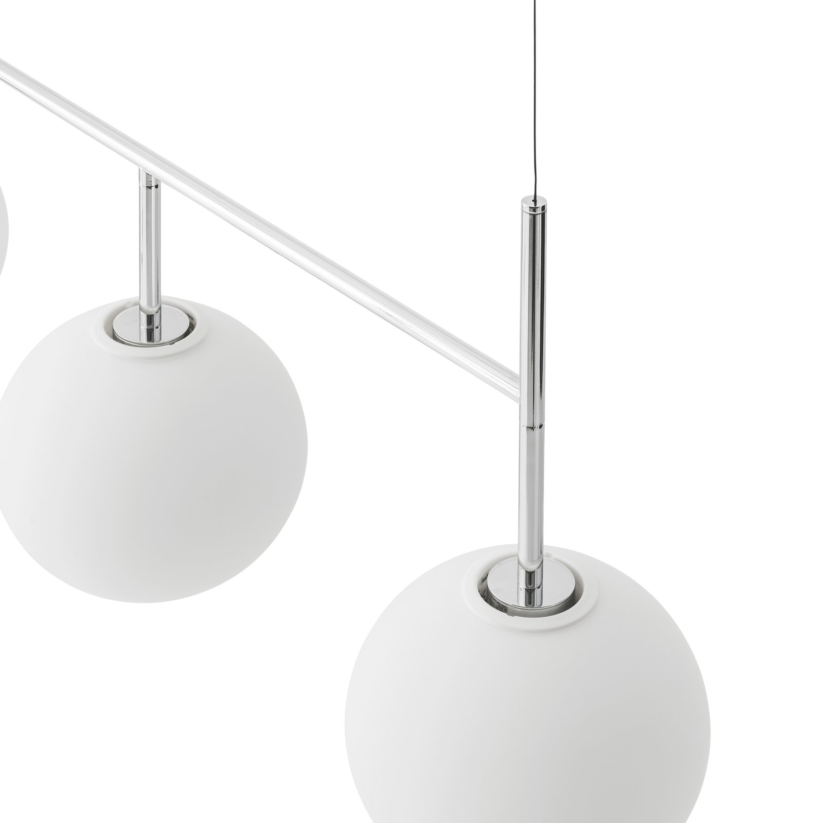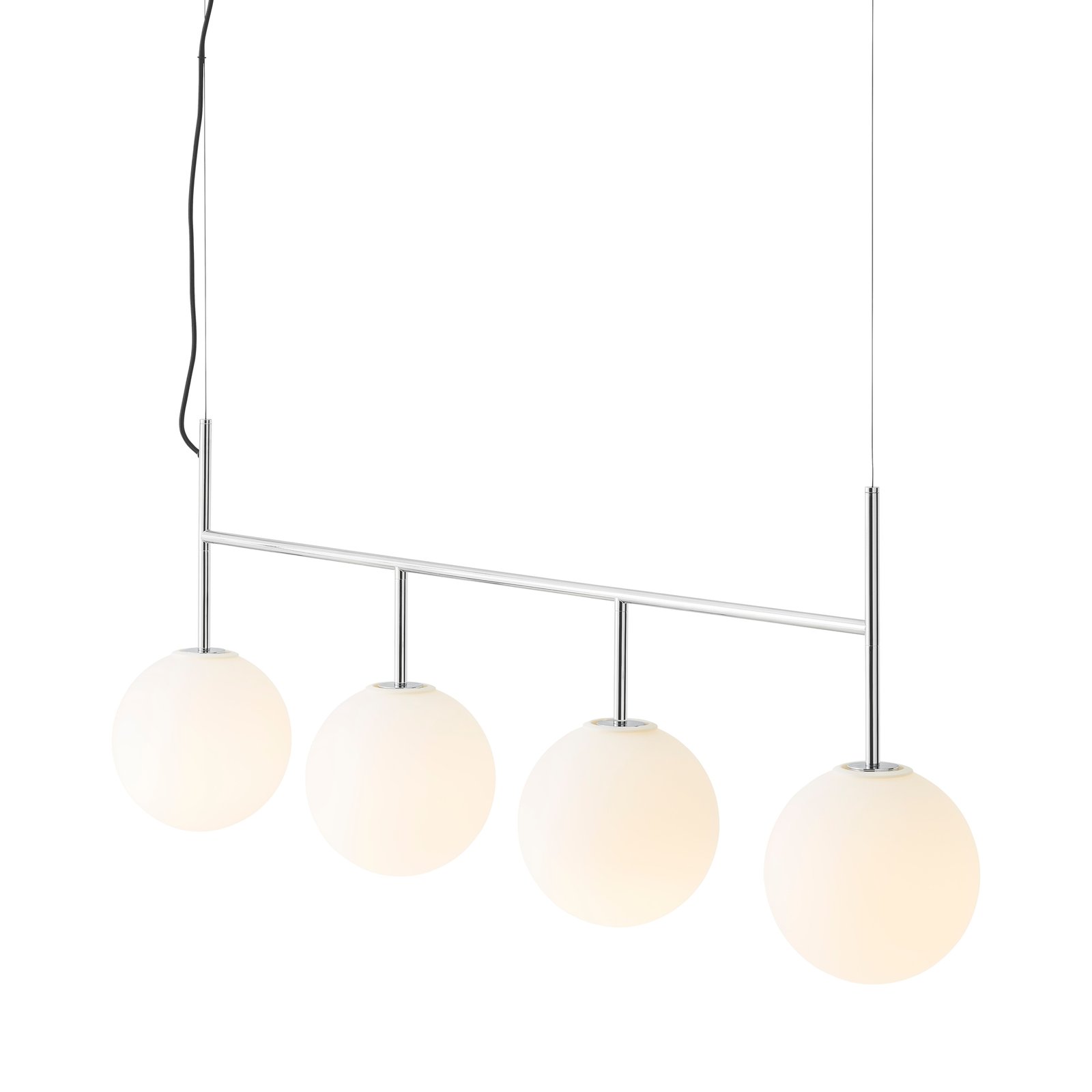 The globe shade is made from mouthblown opal glass and the core is designed with aluminium to draw heat away from the LED light source, allowing the bulb to run at the optimum temperature. Accessory fittings are made of brushed brass or painted steel.